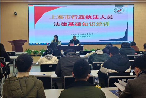 12月22日,由长宁区司法局和我校联合举办的2025年度第八期行政执法人员培训班在普陀区业余大学正式开班。来自长宁区发改委、教育局、生态环境局等20余个单位的62名行政执法人员参加培训。